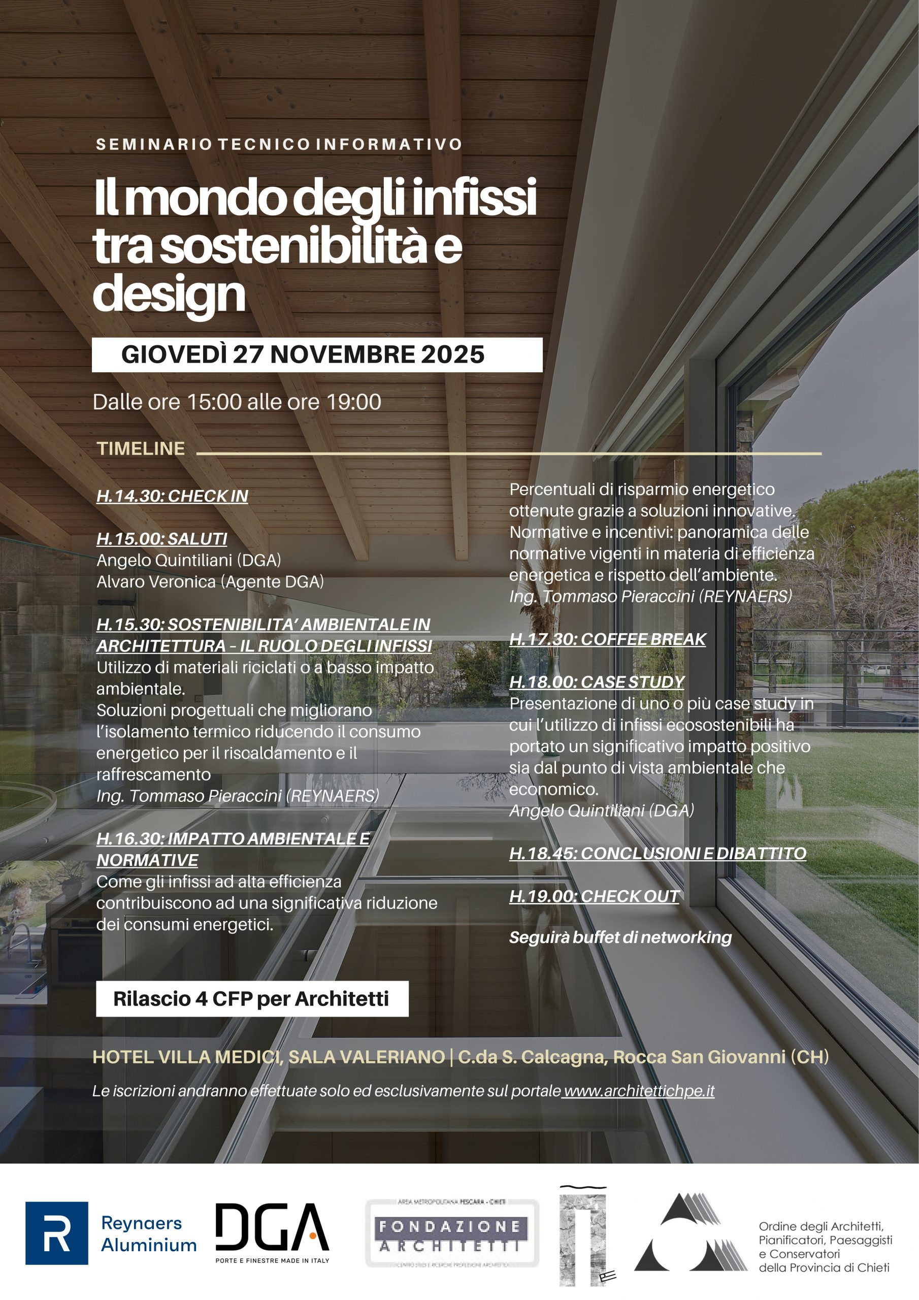 Il seminario esplora l’evoluzione del settore degli infissi in un’epoca in cui estetica, efficienza energetica e rispetto per l’ambiente devono convivere in equilibrio. L’incontro approfondirà come i materiali innovativi, le tecnologie costruttive e le nuove normative europee stiano ridefinendo il concetto stesso di finestra e serramento, con particolare attenzione ai criteri di sostenibilità e alle tendenze del design contemporaneo.
